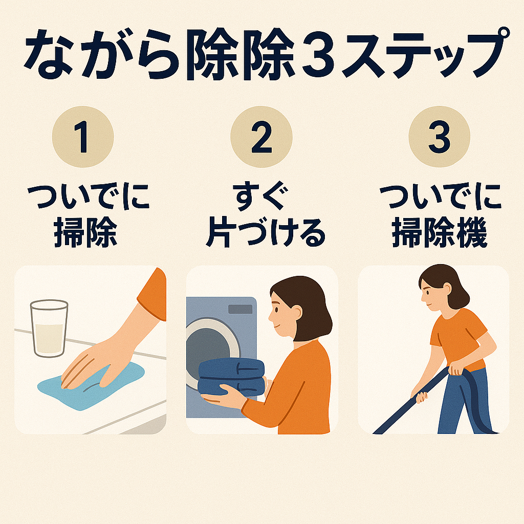 “ながら掃除”を取り入れるだけで、掃除の負担は驚くほど軽くなります。