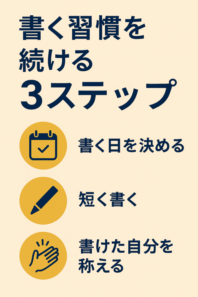 この記事では、忙しい人でも無理なく続けられる「書く習慣の続け方」を3つのステップで紹介します。
