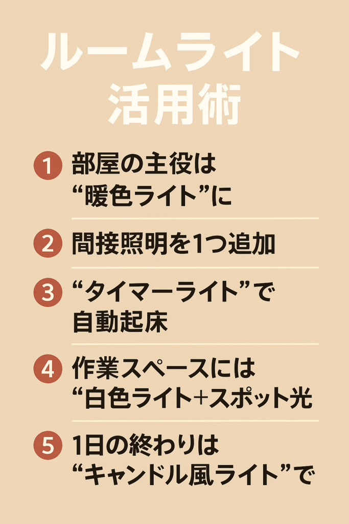 “モチベが上がるルームライト活用術”をわかりやすくご紹介します。