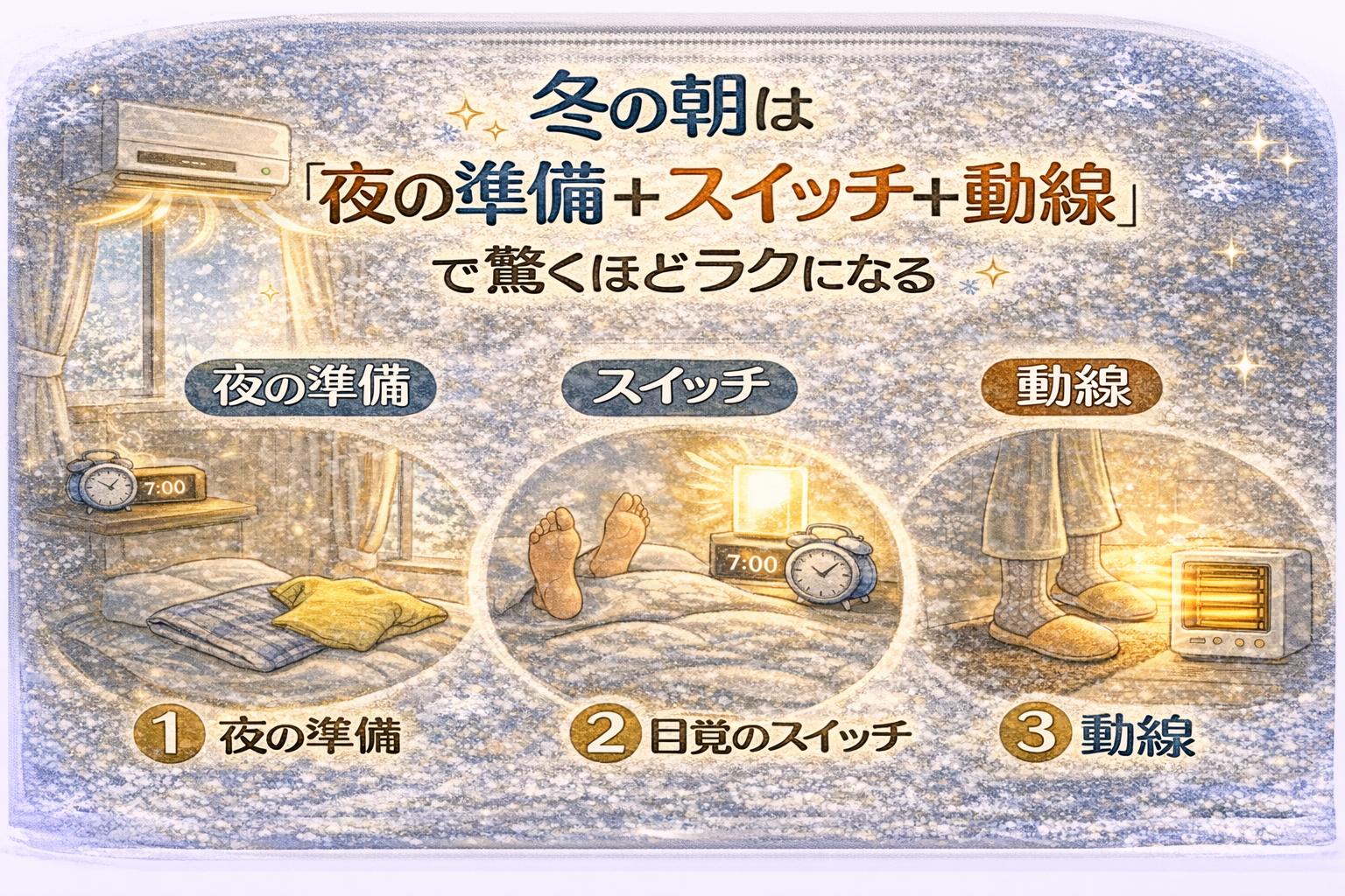 冬の朝をラクにするための勝負は、実は 前夜 に決まります。