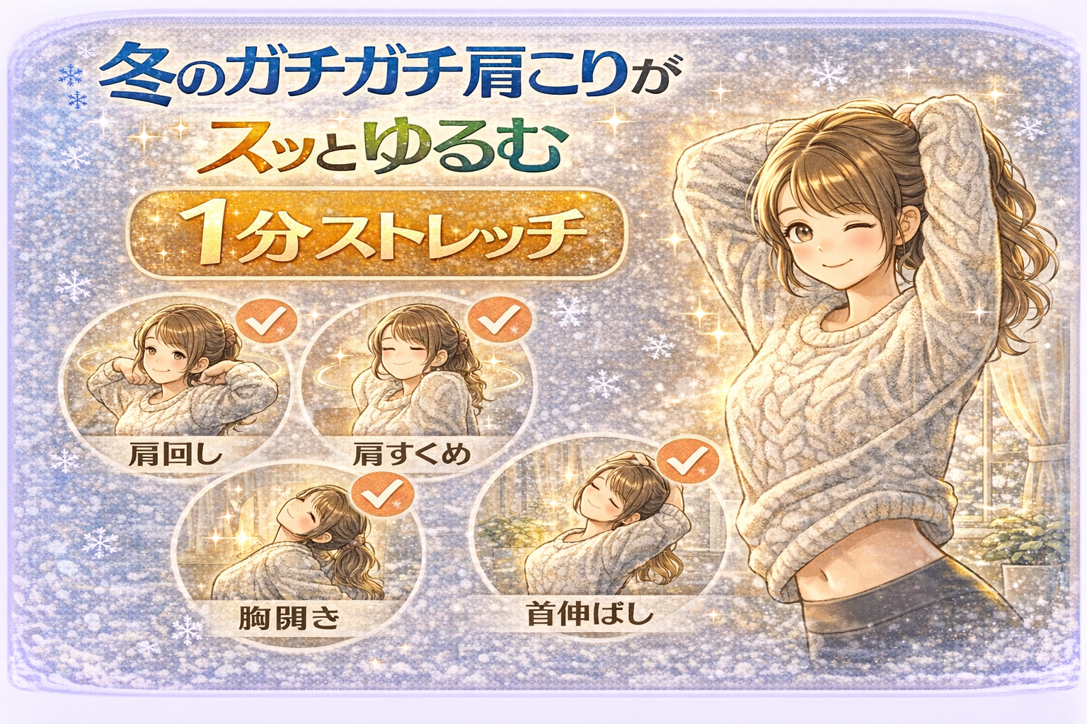 冬の肩こりは、たった1分のストレッチで一瞬で軽くなることが多いのです。