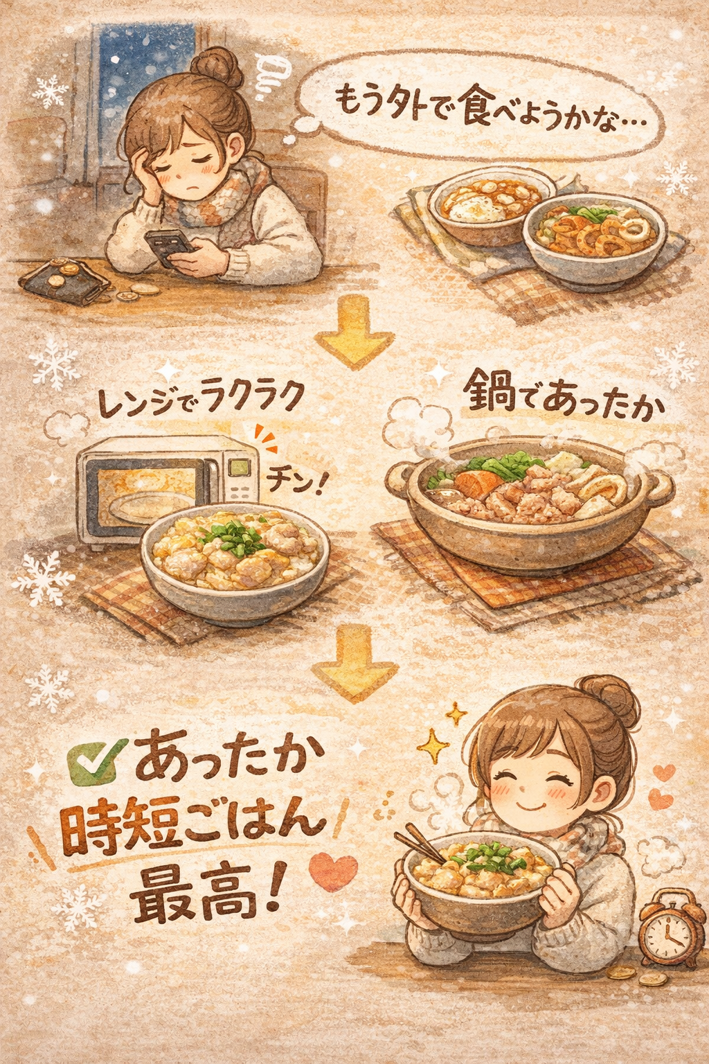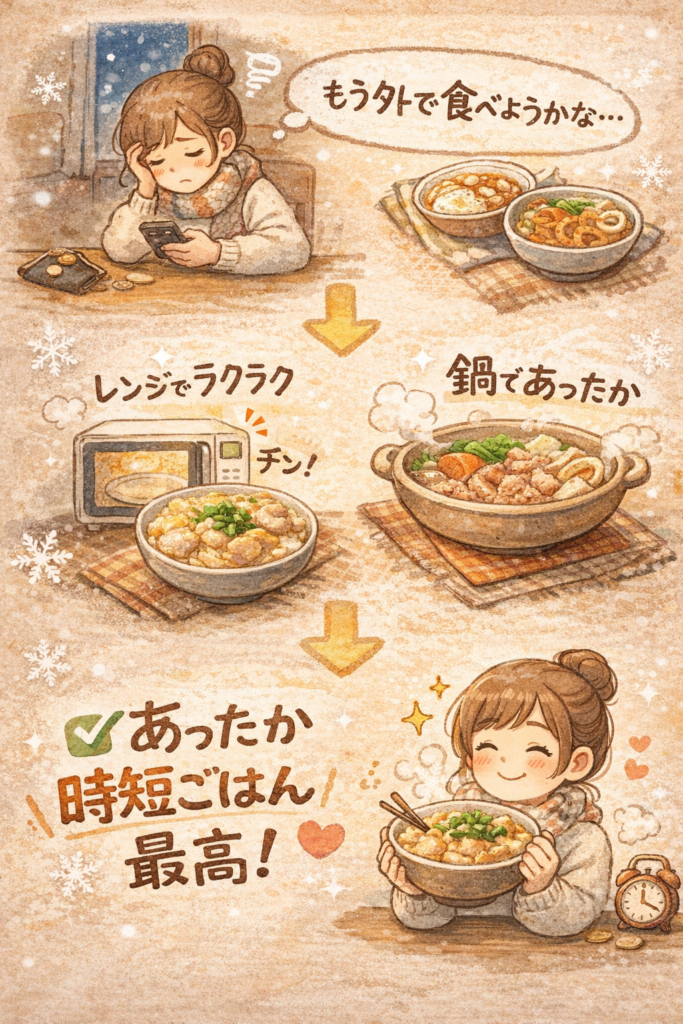 でも実は、冬こそ“外食に頼らないほうがラク”になる時短ごはんのコツがあります。