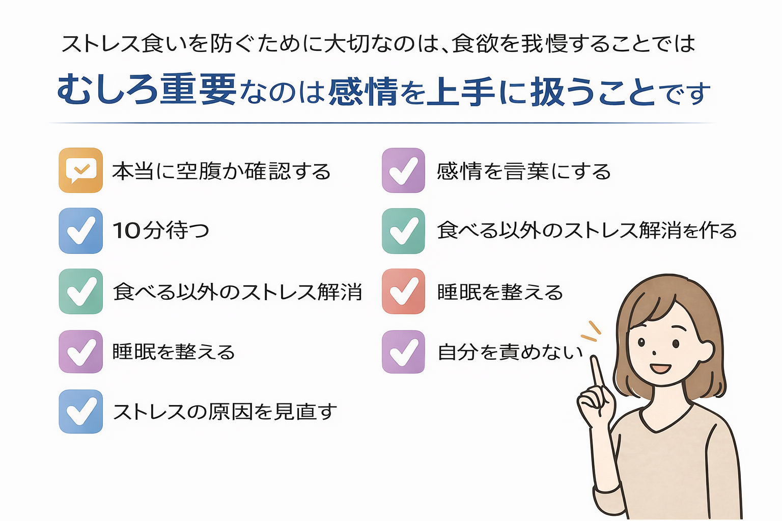 感情を整えることで自然と食べすぎを防ぐ方法です。