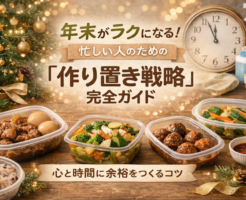 ほんの少し先の自分を助ける工夫で、心と時間に余裕をつくろう 年末が近づくと、仕事の締め切り、家の大掃除、行事や付き合いなど、 やることが一気に押し寄せてきます。 そんな中で、毎日必ずやってくるのが「食事の準備」。 「今日・・・