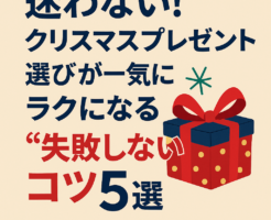 クリスマスが近づくとワクワクする一方で、「何を選べば喜んでくれる?」「好みがわからない…」と、プレゼント選びに迷いがち。 実は、クリスマスプレゼントを“失敗しない”ためにはいくつかのシンプルなコツがあります。 この記事で・・・