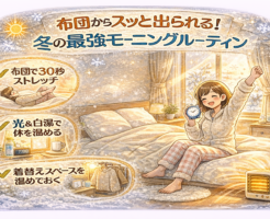 寒い冬の朝でも“スッと動ける”体と心をつくる方法 冬の朝は、とにかくつらい。布団から出られない、顔を洗うのが冷たい、身支度が進まない——そんな悩みを抱える人は少なくありません。 気温が低い冬の朝は、体温・代謝・血流が下が・・・
