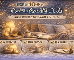 寝る前は、体と心を回復モードに切り替えるための大切な準備時間 冬の夜は長く、静かで、どこか特別な空気があります。 けれど同時に、「疲れが抜けない」「眠りが浅い」「朝がつらい」と感じやすい季節でもあります。 その原因は、日・・・