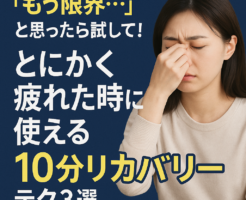 とにかく今すぐ疲れを取りたい!と思ったら 「なんかもう動けない」「頭が回らない」「やる気が出ない」——そんな日、ありますよね。 忙しい毎日を過ごしていると、気づかないうちに心も体も限界に近づいていることがあります。 でも・・・